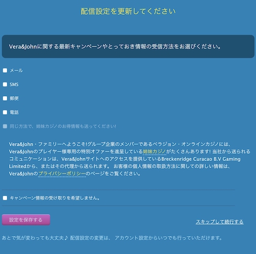 このようにベラジョンからの情報を受け取る媒体を設定できます。