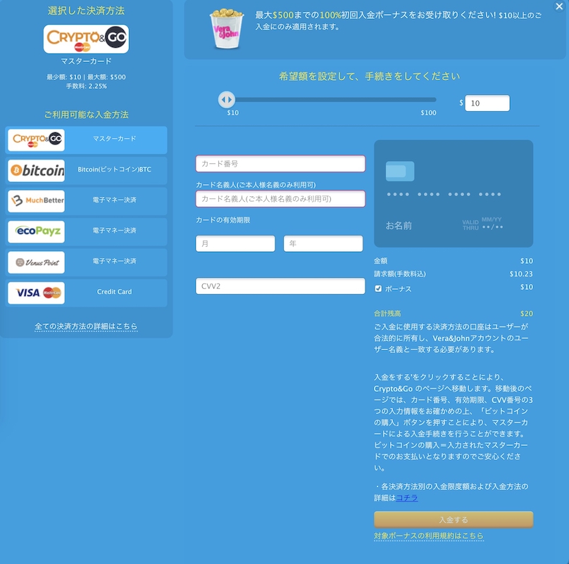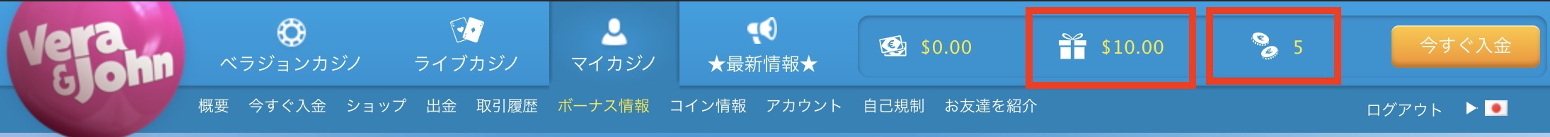 ちなみにベラジョンは$10からの入金ができますが、他のカジノなどは、